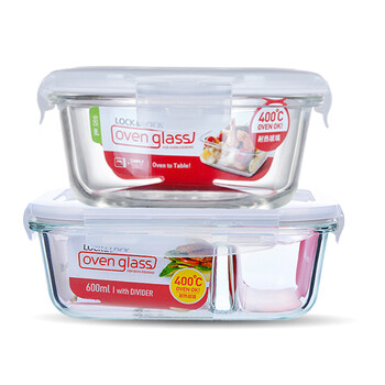乐扣乐扣 分隔耐热玻璃密封保鲜盒套装 600(分格)+650(圆形)ML 带饭包