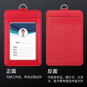 嘉然恒 真皮工作牌企业员工胸牌证件卡套带收纳卡位挂脖牌会议出入证工作证套牛皮材质可定制 红色竖款