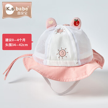 喜亲宝新生儿帽子宝宝太阳帽遮阳帽婴儿渔夫帽小码(粉色)双耳款
