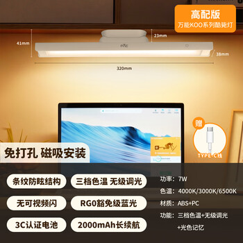 雷士(NVC)充电台灯大容量电池35h续航床头灯磁吸式粘贴酷毙灯喂奶灯夜灯KOO