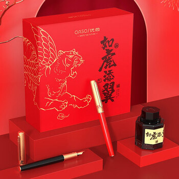 【开学必备】优尚(OASO)钢笔礼盒如虎添翼T836-1虎年限定款曜石黑包尖毕加索旗下礼盒套装