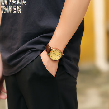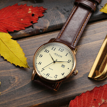 聚利时(Julius)手表男复古时尚日历窗休闲皮带石英学生考试男士手表咖色JA-508MC
