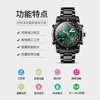 时刻美(skmei)青少年初高中生学生运动多功能夜光防水电子手表男生日礼物1389