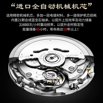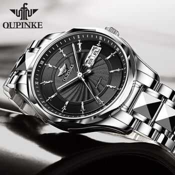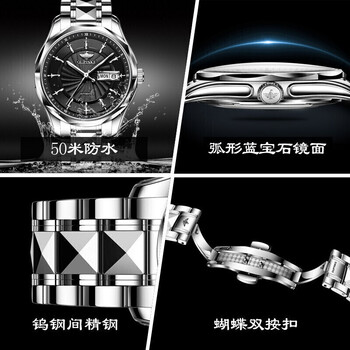 欧品客手表男机械表全自动双日历防水钨钢商务休闲男手表进国表生日礼物