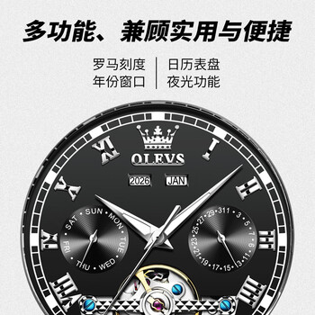 欧利时(OLEVS)瑞士认证品牌手表男士机械表男全纯自动飞轮防水商务名表生日礼物
