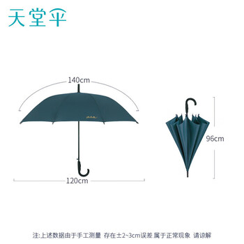天堂 长柄加大雨伞半自动超大号商务直杆伞晴雨伞70*10骨 冷山绿