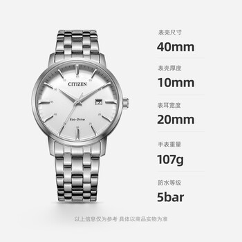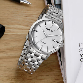 西铁城(CITIZEN)手表男日韩表光动能日显白表盘钢带商务送男友礼物BM7460-88H