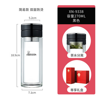 希诺双层玻璃杯男茶水分离杯高档泡茶杯子车载水杯XN-9338黑色 290mL
