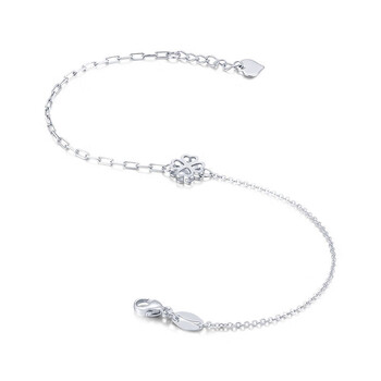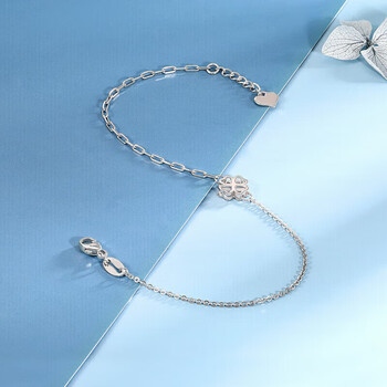 梦金园铂金手链PT950爱心四叶草手链白金手链女款