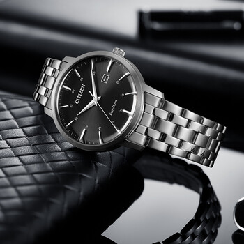 西铁城(CITIZEN)手表男士光动能日韩表日显黑盘钢带学生送男友礼物BM7460-88E
