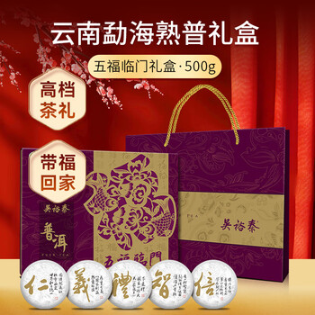 吴裕泰普洱熟茶 普洱茶五福临门/500g盒 过节茶叶礼盒
