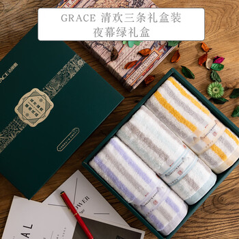 洁丽雅(Grace)新疆棉毛巾纯棉舒适柔软 W1178清欢三条礼盒装 夜幕绿礼盒 颜色随机(指定请备注)