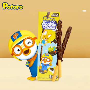 啵乐乐巧克力棒夹心饼干长条儿童宝宝零食饼干盒装54g 原味