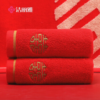 洁丽雅家纺大红色情侣婚庆结婚纯棉洗脸巾加厚成人毛巾72*34 105g 1条装