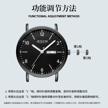 聚利时(Julius)手表女新款初中高中生中学生女生考试日历石英手表黑盘JA-1516LD