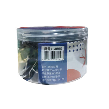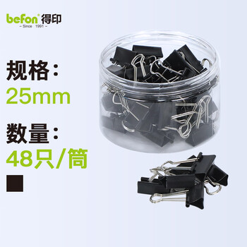 得印长尾夹48只25mm燕尾夹4#中号黑色 多规格纸票夹金属夹子学生试卷票单据小夹子办公用品48只/筒3890