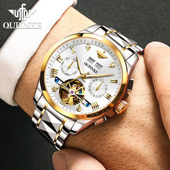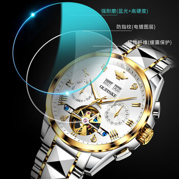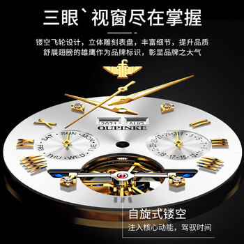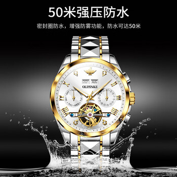 欧品客男士手表机械全自动机械手表男飞轮瑞士认证品牌礼物京东自营腕表
