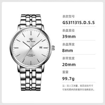 天王(TIAN WANG)手表男士 生日礼物学生手表钢带石英男表白色GS31131S.D.S.S