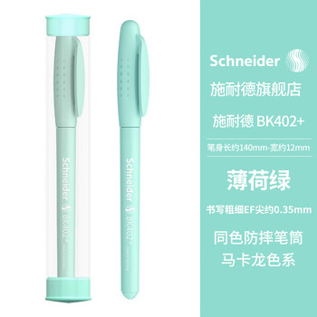 施耐德(Schneider)钢笔小学生成人练字签字笔直液式墨水笔 男女孩儿童开学季必备用品EF尖BK402+马卡龙薄荷绿