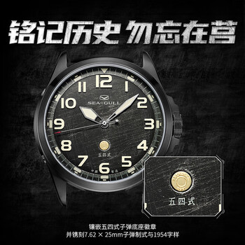 海鸥(SEAGULL)手表男自动机械表 陆战系列男士手表生日礼物军表礼盒 6107战损版
