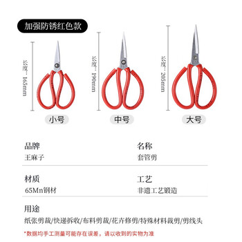 王麻子剪刀家用 剪纸裁缝剪子 红色防锈不锈钢尖头手工大剪刀【万能剪】