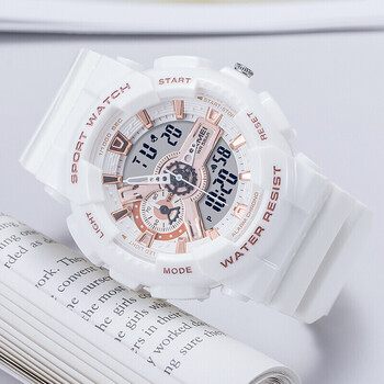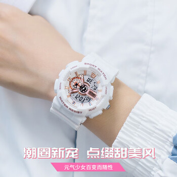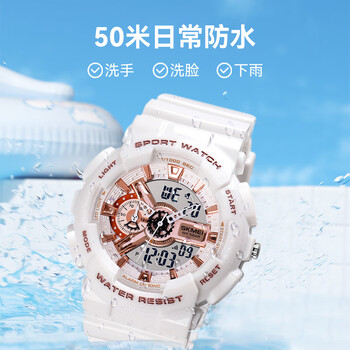 时刻美(skmei)学生手表儿童初高中生运动电子表夜光闹钟防水多功能女生1688白色