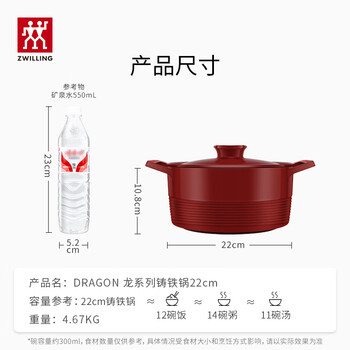 双立人(ZWILLING)汤锅珐琅锅龙铸铁锅炖锅煲汤锅焖烧炖煮家用餐厅厨房 古韵红22cm