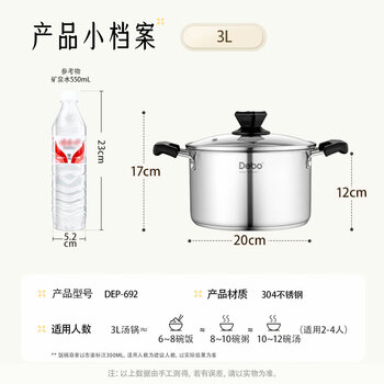 Debo德铂汤锅不锈钢煲汤锅燃气电磁炉通用20cm
