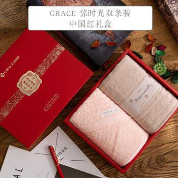 洁丽雅(Grace)新疆棉毛巾柔软纯棉吸水洗脸家用 W1169愫时光双条礼盒装 中国红礼盒 黄色+兰色