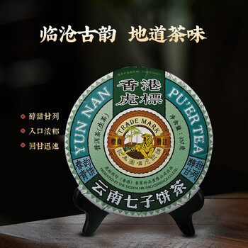 中国香港品牌 虎标 茶叶 普洱生茶饼 春韵青饼 云南临沧普洱茶357g盒装