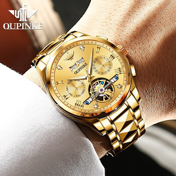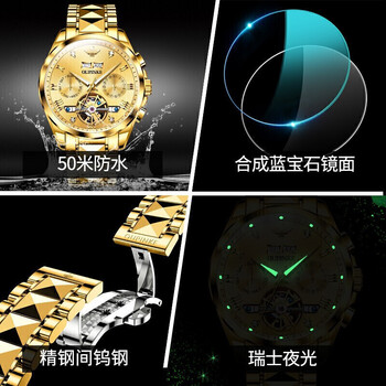 欧品客手表男全自动机械名表镂空夜光防水商务瑞士认证品牌国表生日礼物