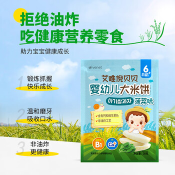 艾唯倪(ivenet)进口婴幼儿米饼辅食 磨牙棒宝宝零食胚芽米6个月以上 菠菜味30g