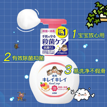 狮王(Lion)泡沫洗手液滋润温和易冲洗儿童成人通用原装进口250ml果香型