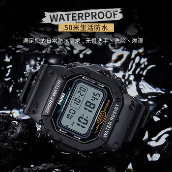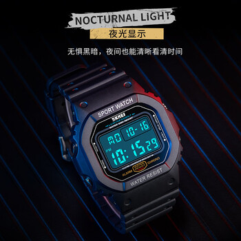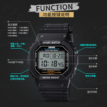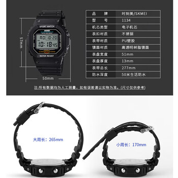 时刻美(skmei)学生运动电子表方形复古简约初高中生青少年男夜光防水闹钟1134黑