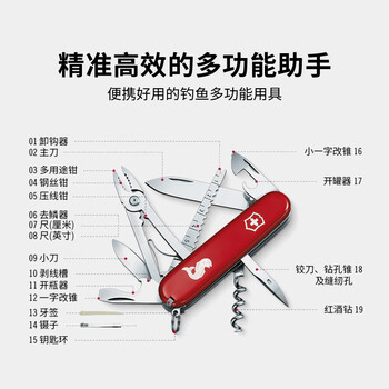 维氏瑞士军刀垂钓者91mm多功能刀户外工具折叠刀1.3653.72红色
