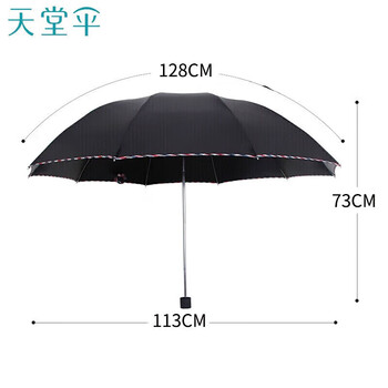 天堂双人晴雨伞三折遮阳伞10骨加大加固抗风防晒太阳伞 3311升级黑色