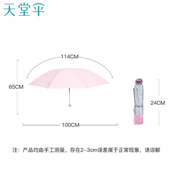 天堂 防紫外线晴雨伞三折银胶防晒太阳伞遮阳伞57*8骨 蜜桃粉