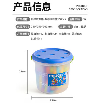 弥鹿(MiDeer)儿童玩具磁力棒磁力自由拼插磁铁玩具彩虹磁力棒100件儿童礼物