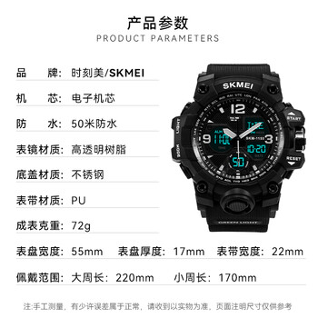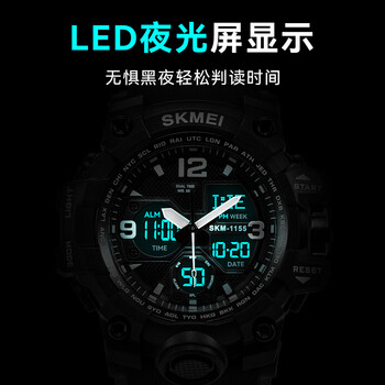 时刻美(skmei)初高中生运动户外电子手表闹钟防水12-18岁学生专用生日礼物1155B