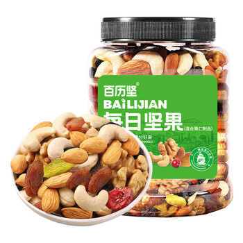 百历坚 罐装每日坚果500g 混合干果榛子腰果巴旦木核桃仁零食小吃