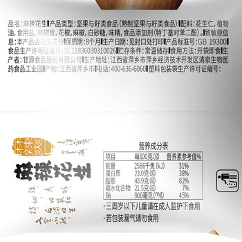 甘源牌 花生麻辣味285g坚果炒货休闲零食小吃麻辣下酒菜熟花生米