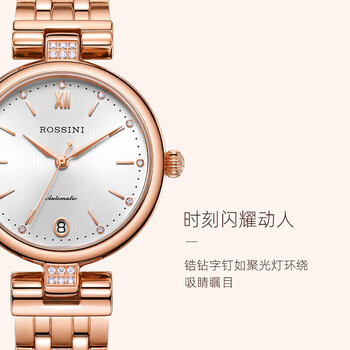 罗西尼(ROSSINI)手表女款 女士手表生日礼物气质日历机械表白盘钢带718752