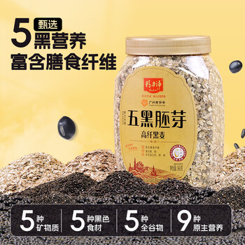 精力沛五黑胚芽高纤黑麦968g/罐 营养冲泡免煮谷物健康滋养早餐