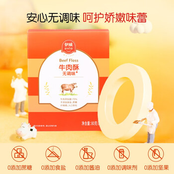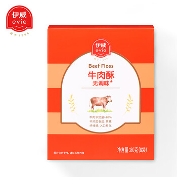 伊威(Eastwes)无调味牛肉酥80g(8袋) 含铁锌不添食盐白砂糖富含蛋白质