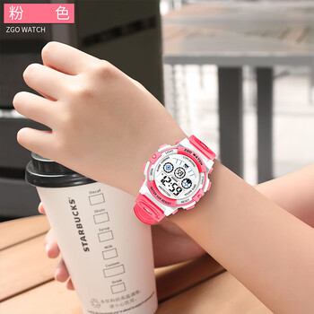 正港(ZGO)电子手表女学生女孩防水夜光运动手表女童生日礼物 305粉红