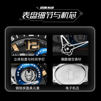 漫威(Marvel)钢铁侠联名多功能运动电子表初高中学生儿童防水手表新年礼物