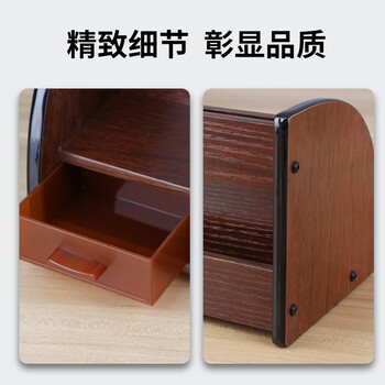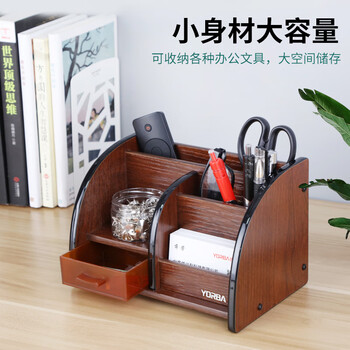 优必利 木质笔筒桌面收纳盒 组合办公桌整理架商务笔筒 桌面抽屉收纳座 6016A