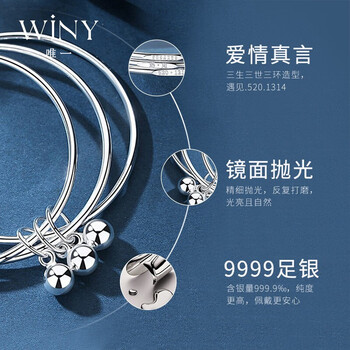 唯一(Winy)银手镯女款足银9999实心镯子生日礼物送女友老婆正品纯银饰品