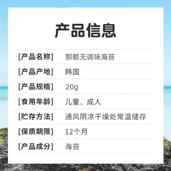 拿嘟(nahtoo)那都海苔20g 儿童零食无调味即食海苔香脆紫菜