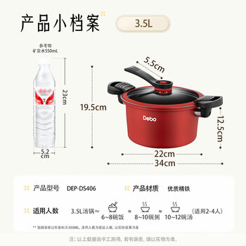 Debo德铂汤锅微压不粘炖汤锅 低压力煲汤锅苏非考斯一代